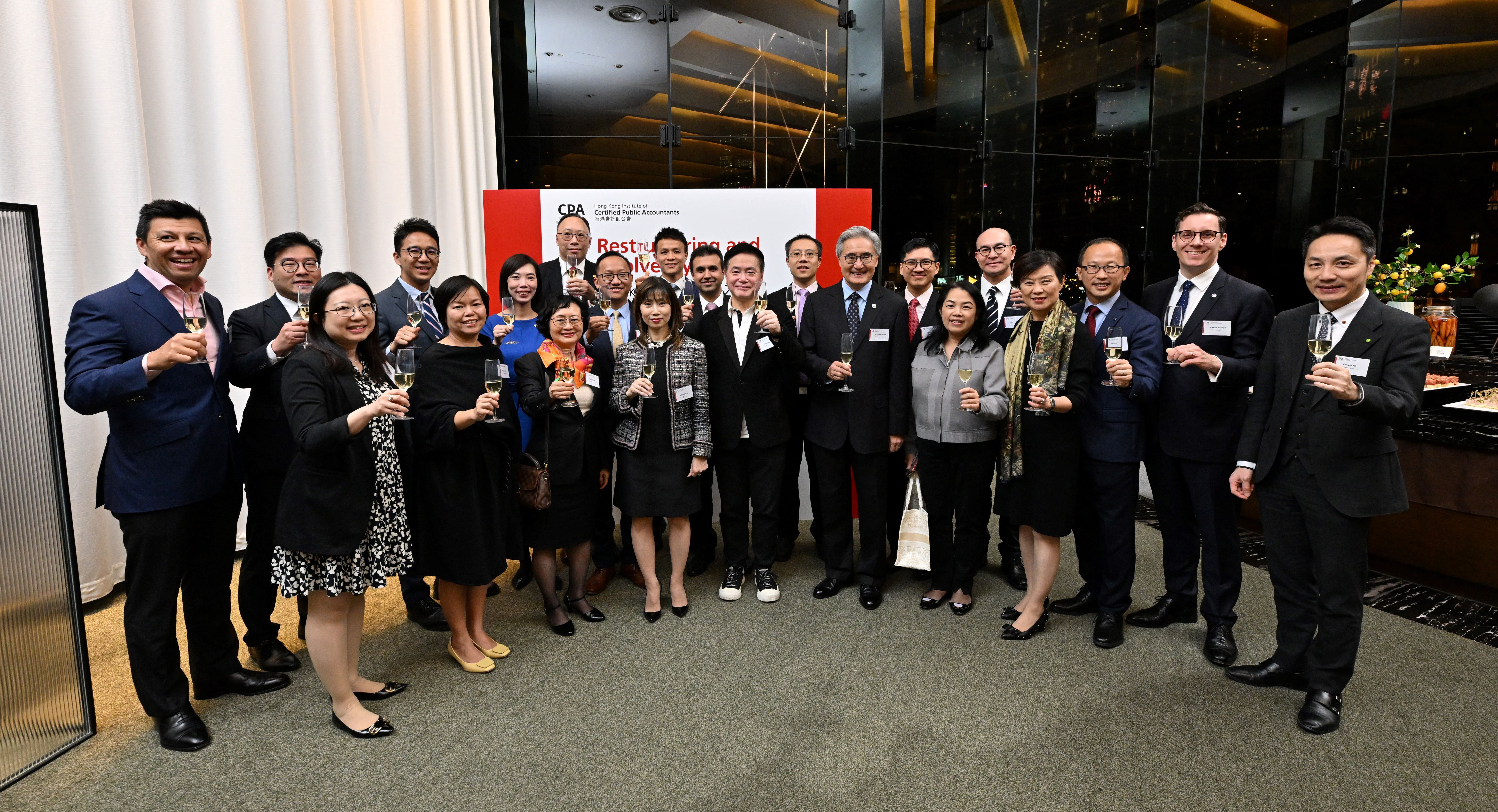 The Restructuring and Insolvency Faculty (RIF) Cocktail Reception 2025, which was hosted by the Hong Kong Institute of Certified Public Accountants, was held on 26 November 2025. Miss Lillian Chow, Official Receiver (first row, fourth left), was pictured with RIF members and other guests from regulatory authorities, and gave a speech as the guest of honour at the reception.