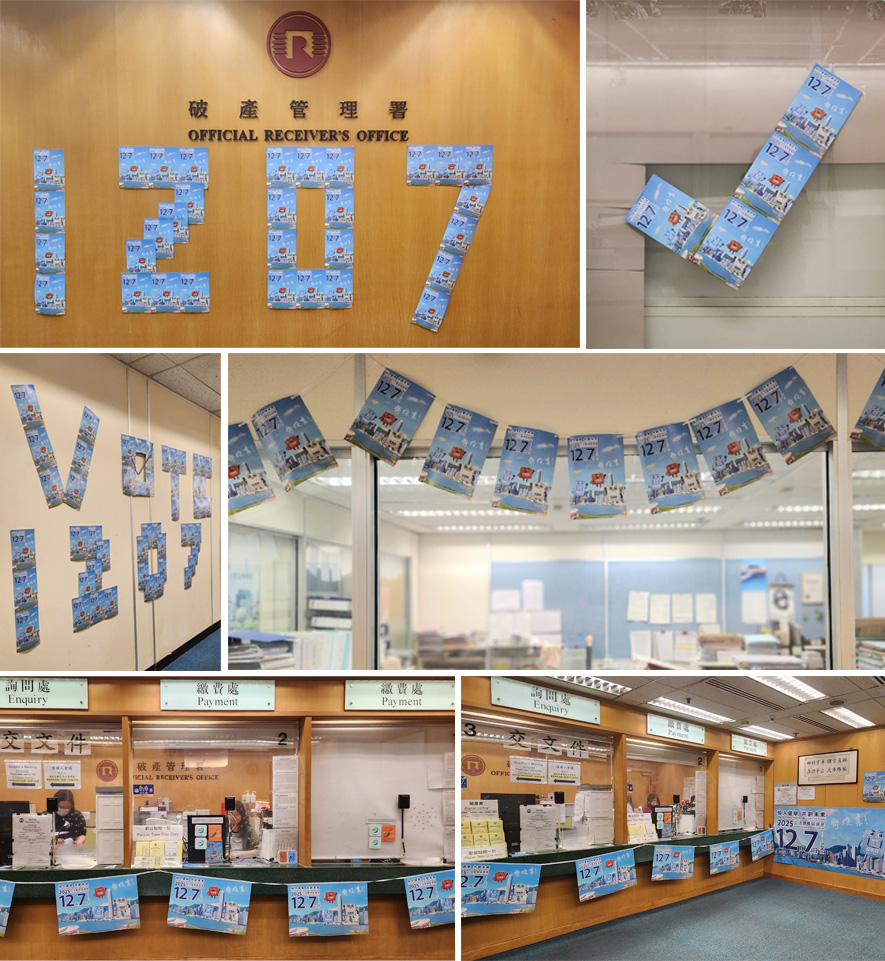 在破产管理署处所内展示2025年立法会换届选举的宣传物品。