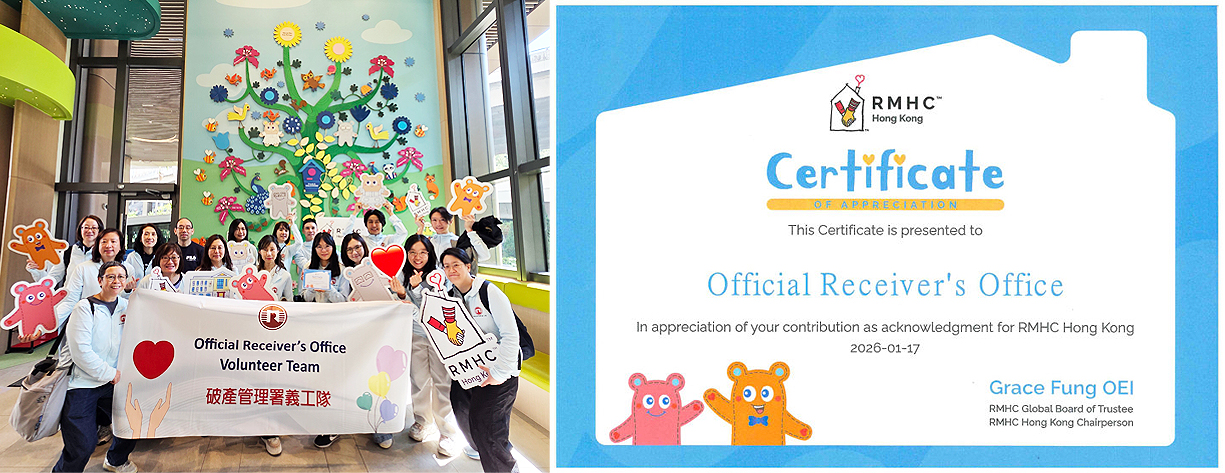 2026年1月17日,破产管理署义工队17名成员探访麦当劳叔叔之家观塘家舍。家舍多年来为病童家庭建造「家以外的家」,提供舒适的住宿环境,让他们能专心照顾正接受治疗的病童,有助凝聚家庭,并为他们带来希望。我们参观了家舍设施,与一众病童及其家人一起制作手工艺品,并共进午膳。家舍为有需要的家庭精心规划全面的服务,致力为他们提供一个安身之所,当日的体验实在发人深省。